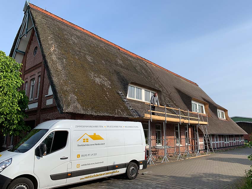 Auch die Auffüllung des Heidefirst, das Abputzen & Entmoosung von Reetdächern gehört zu den Anfallenden Pflegearbeiten. Gerne vereinbaren wir eine Termin bei Ihnen vor Ort und wir schauen was gemacht werden muss und erstellen Ihnen anschließend ein entsprechendes Angebot.