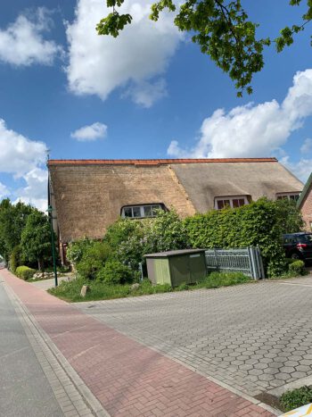 Unser letztes Bauvorhaben in Handeloh Landeis Harburg, Niedersachsen hier haben wir in 7 Tagen ein Reetdach Reparatur durchgeführt, bei der eine Reetdachseite in der unteren Hälfte komplett neu aufgearbeitet wurde.